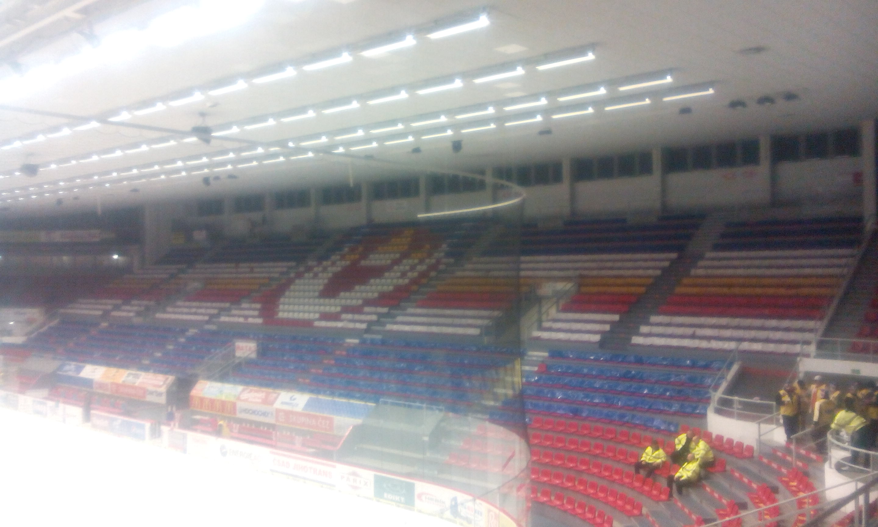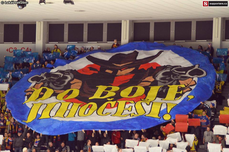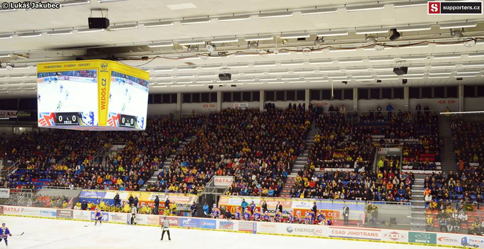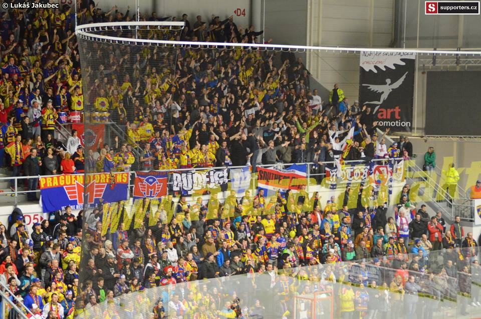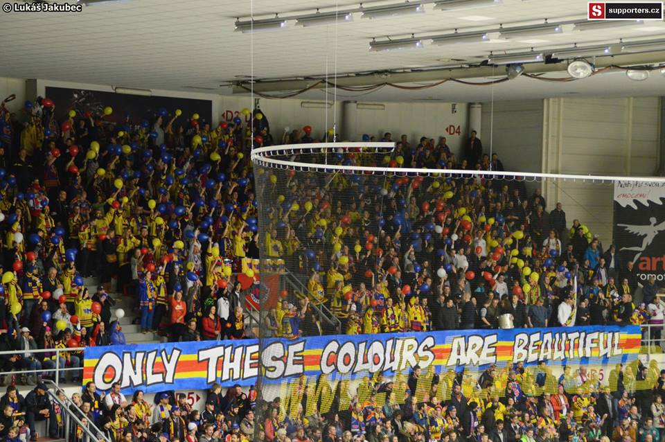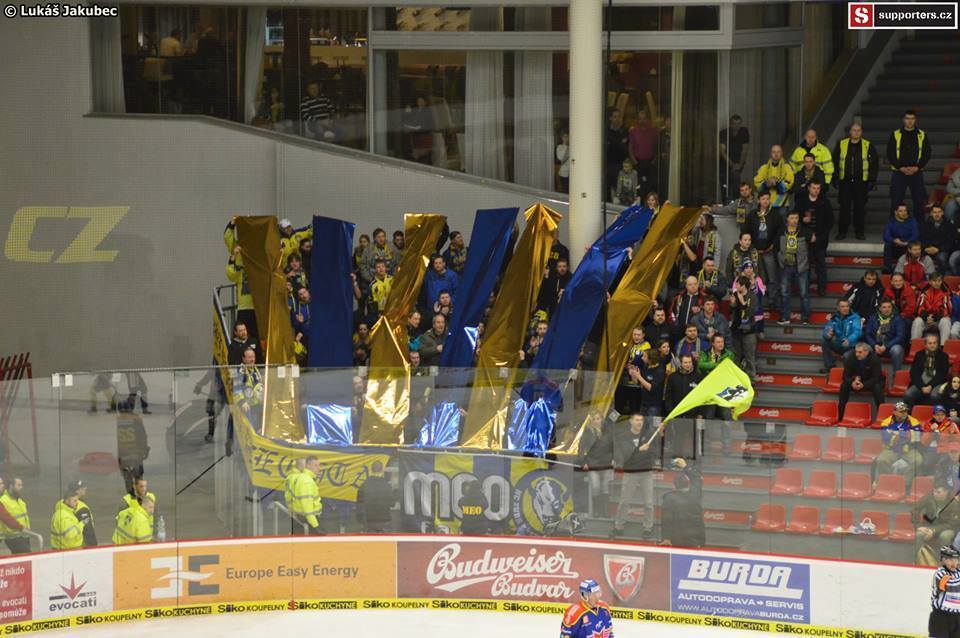 Dnes už atmosféra tak skvělá není, zejména první třetina je dost slabá. Toto bohužel cítí i hosté a jsou víc a víc hlasití.V první třetině se prezentují choreografií oba tábory, na jedné straně transparent a balónky, ty v našem strakatém kotli bohužel nejsou příliš výrazné, na té druhé několik lesklých pruhů, na tom se asi nedalo zkazit nic.