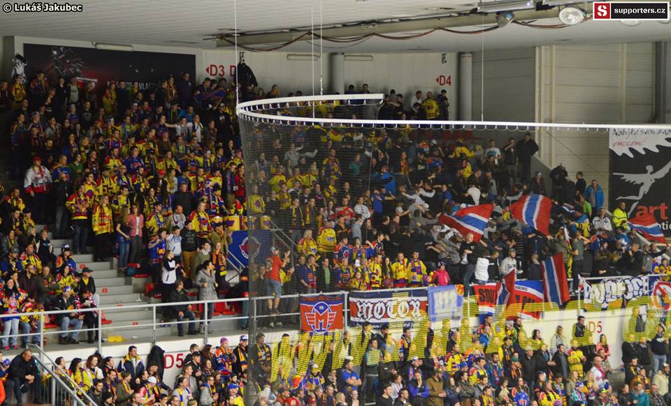 Fandění domácích dnes hodně ovlivňuje nervózní a rozkouskované dění na ledě. Motor ale pak vyrovnává a atmosféra jde zas hodně nahoru. Zejména oslavný chorál pro T. Nouzu je dnes hodně, hodně hlasitý.Během zápasu je také vidět v sektoru hostů a kolem něj několik potyček. Abych šel příkladem, nebudu už se hosty nijak zaobírat, protože až příliš velkou část utkání tráví lidé v kotli čuměním do kotle hostů místo fandění. Nezodpovědnost! A korunu tomu nasazuje člověk za mikrofonem svými naprosto trapnými poznámkami na adresu hostů. Fakt se strašně stydím. Něco podobného jsme zažili loni v Benátkách a už tam mi to přišlo jako vrchol trapnosti.