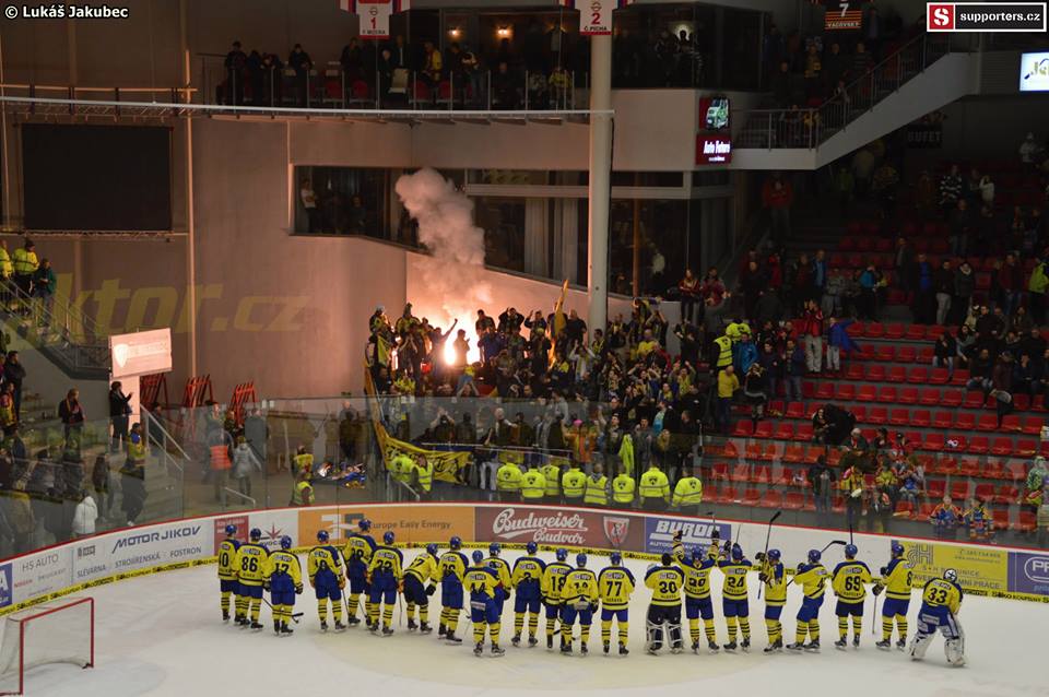 V den prvního zápasu většina z nás sešrotuje poslední sousto oběda a už si to štráduje na zimák. Teď už jde opravdu do tuhého, nic se nesmí podcenit, vše musí být připraveno. Na tribuně C vzniká kartoniáda a mezi tím se objevuje u vchodů novodobý mor českých stadionů a zabiják atmosféry – tleskátka. Ty navíc perfektně ladí s novým a naprosto odporným žlutým polepem kostky na červeném zimáku…bravo.